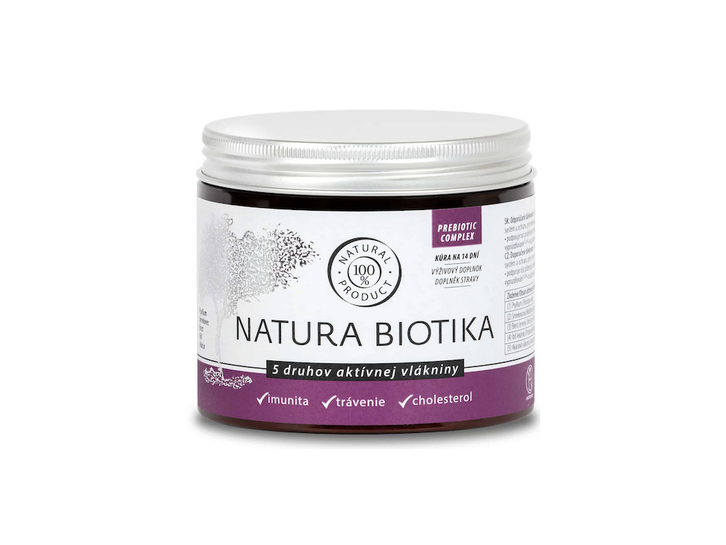 Natura Biotika je jedinečný komplex pěti druhů vlákniny s prebiotickými účinky, navržený pro podporu střevního mikrobiomu, trávení a přirozené imunity. Díky kombinaci rozpustných i nerozpustných vláknin poskytuje komplexní výživu pro přátelské bakterie a zároveň jemnou péči o sliznice trávicího traktu.